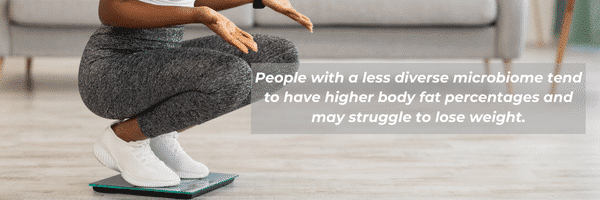 En outre, certains types de bactéries intestinales ont été associés à l’obésité et à la prise de poids. Des études ont montré que les personnes dont le microbiome est moins diversifié ont tendance à avoir un taux de graisse corporelle plus élevé et peuvent avoir du mal à perdre du poids. En effet, les bactéries intestinales peuvent influencer la façon dont notre corps absorbe et stocke les graisses.